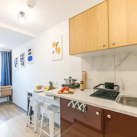 A fridge and a cooktop can be found in a kitchen area. Javel train station is located only a few steps from the accommodation.